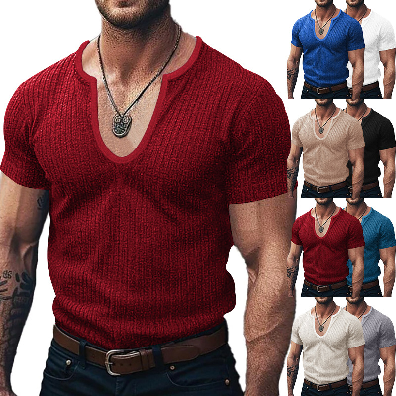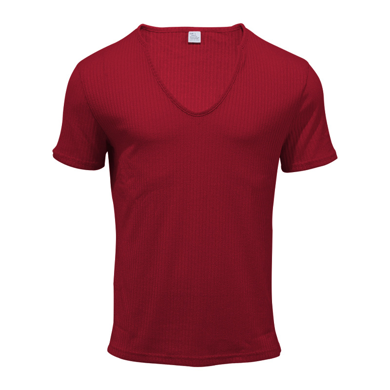 Men's Solid Color V-neck Slim Casual T-shirt